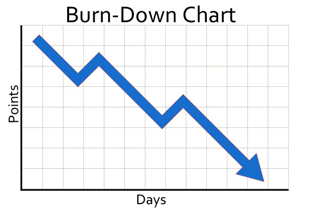 The Scrum Master may also update a Burn-down chart daily, which consists of Points on the Y-axis and Days on the X-axis to represent the points that remain to be completed.