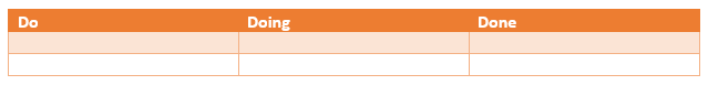 The Scrum Master may use a Scrum Board or storyboard to visually represent the progress taking place. This is often divided into three phases of work: Do, Doing, and Done. The Do column contains the planned tasks. The Doing columns contains items being worked on. And the Done column contains items that are completed. Items placed in these phases are usually color-coded cards. Green cards are features, white cards are user stories, yellow cards are tasks, red cards are defect cards, and blue cards are technical debt.
